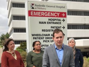 Nashville, TN – Earlier today, patients and providers hosted a press conference in front of Nashville General Hospital to reaffirm their support for Affordable Care Act (ACA) the day after the US Senate debate between Representative Marsha Blackburn and former Governor Phil Bredesen. Three speakers pushed back on Rep. Blackburn’s claim that the ACA is broken and spoke about what the ACA’s protections for pre-existing conditions mean for their families and patients.